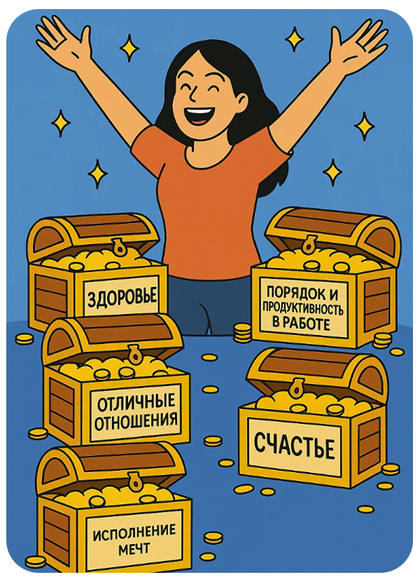 💡 Результат: жизнь перестаёт быть набором случайностей. Ты переходишь к полному управлению. Твой корабль плывет именно туда, куда нужно тебе. Ты чётко знаешь, что делать сегодня, чтобы стало легче завтра.
