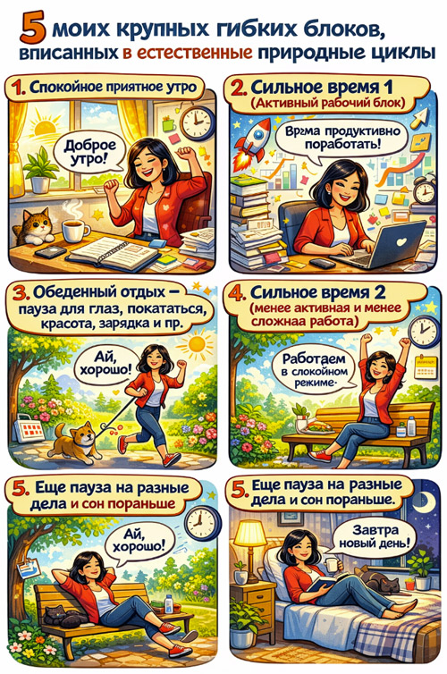5 моих крупных гибких блоков, вписанных в естественные природные циклы — это: