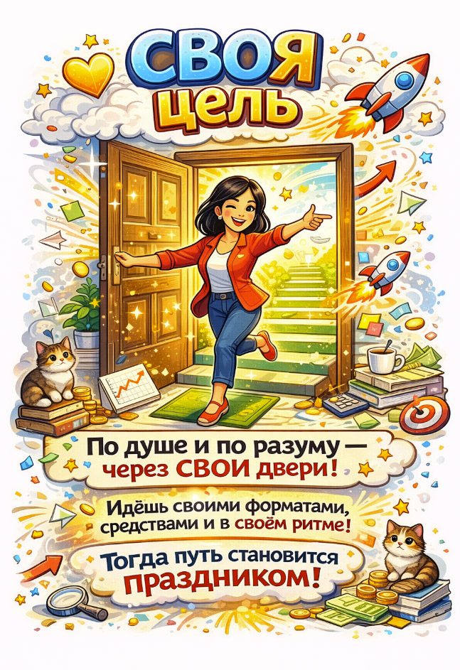 Ну и в идеале, чтобы это была ВАША цель. Ваша по душе и по разуму — душа и разум должны быть едины. Тогда каждый день будет праздник (у меня так).