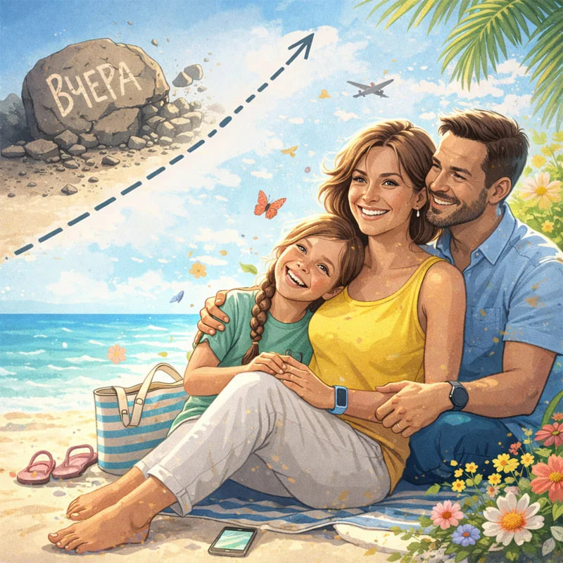 Еще повышение. Поездка с дочкой, втроём — море, смех, фото на аватарку. Глаза — горят. К бывшему появилась теплота, ощущение, что это родной человек. Поздравила его с днем рождения сына. Рада за него. Дочка тоже любит папу и даже братика.